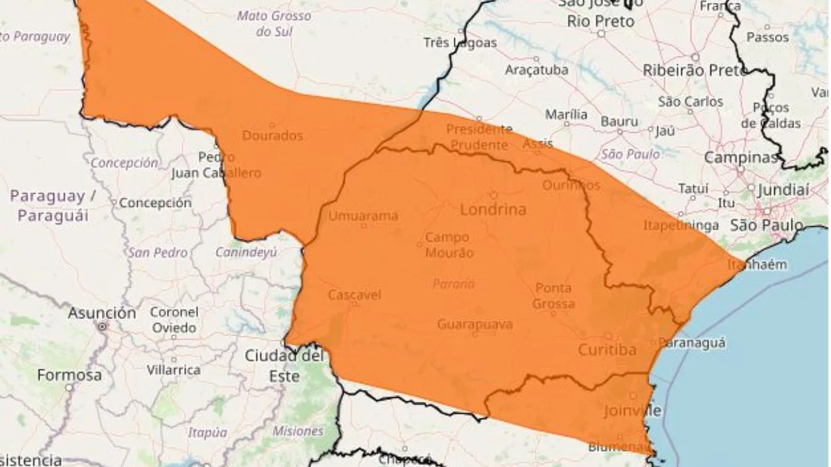 Além do Paraná, algumas regiões de Santa Catarina e do Mato Grosso do Sul também devem ser atingidas pela tempestade.
