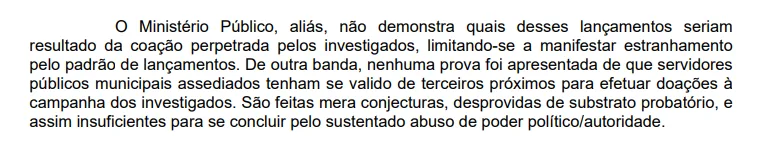 Justiça Eleitoral afirma que alegações seriam “meras conjecturas, desprovidas de substrato probatório”