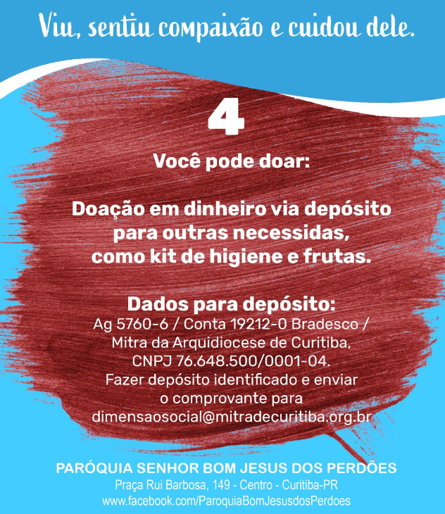 Ou então fazer uma doação diretamente na conta da Arquidiocese: