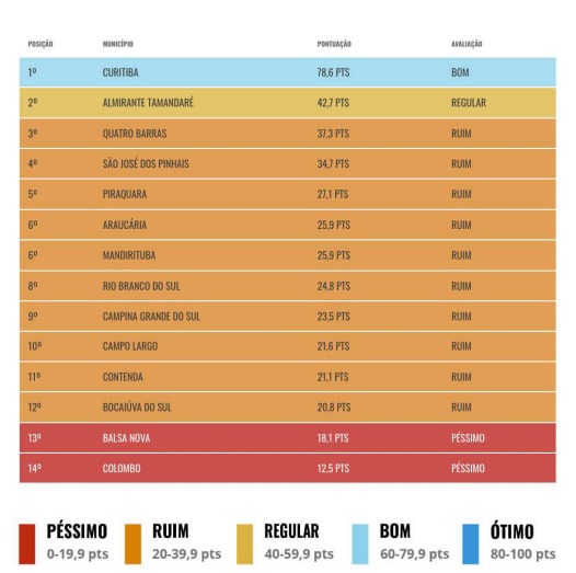 Na participação social, o retrato também é fraco: só Curitiba apresentou consultas ou registros de envolvimento da população; a média regional é ruim.