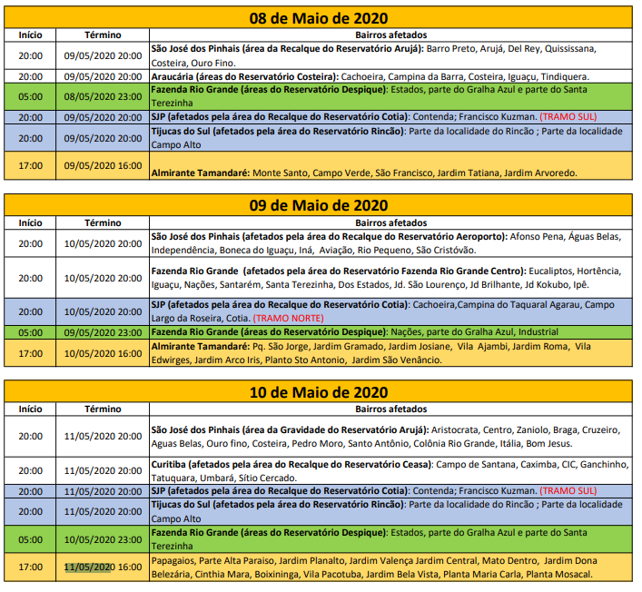 Conforme a Sanepar, a alteração foi necessária porque será preciso aumentar o intervalo da interrupção do abastecimento em regiões que apresentam uma situação mais críticas, por estarem em uma distância maior dos centros de distribuição de água.