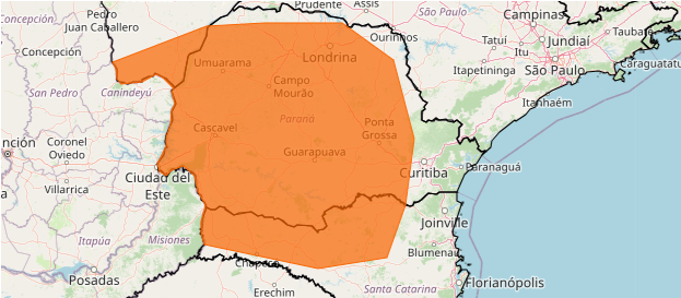 Dos municípios do Oeste paranaense, as tempestades se espalham para as regiões Noroeste, Norte, Central, Sul e cidades dos Campos Gerais.