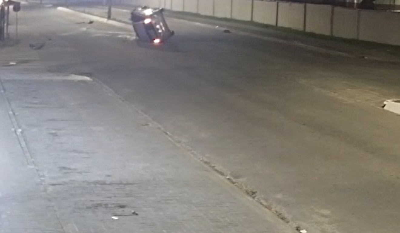 Imagens mostram momento em que um carro Ford Focus prata capotou na madrugada deste sábado (22), por volta das 4h26, na Avenida Curitiba, esquina com a Rua Santa Rita de Cássia, em Matinhos, no Litoral do Paraná. O acidente ocorreu próximo ao estabelecimento Trombetta Materiais de Construção.