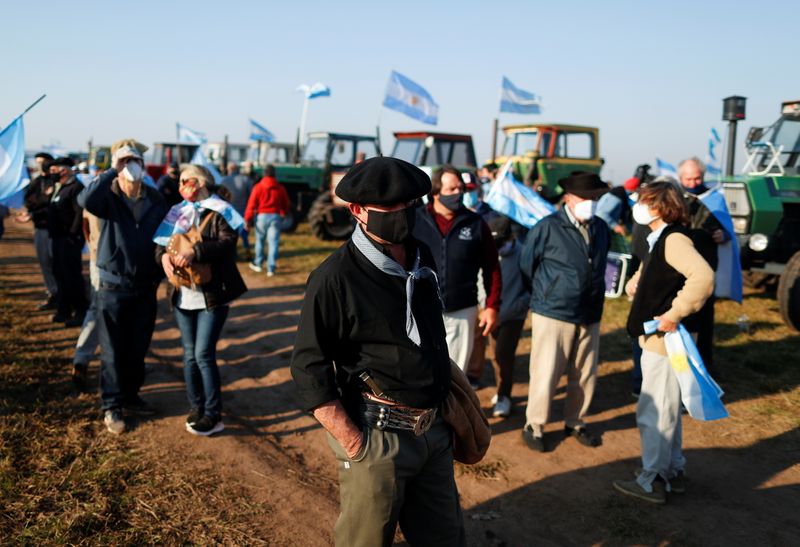 BUENOS AIRES (Reuters) – Produtores de grãos e pecuaristas argentinos se mobilizaram nesta sexta-feira, na cidade de San Nicolás, província de Buenos Aires, para expressar descontentamento com os impostos cobrados sobre exportações e os limites aplicados sobre os embarques de carne –que, segundo eles, desestimulam investimentos no setor.