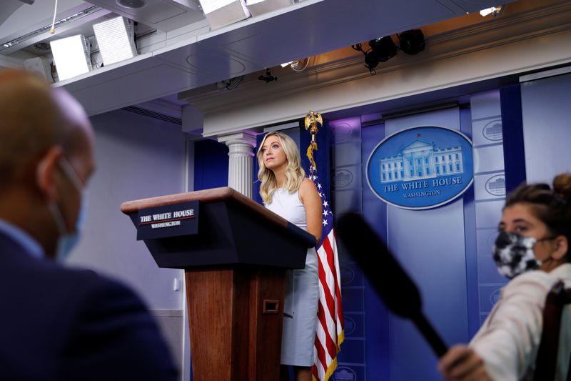 WASHINGTON (Reuters) – A Casa Branca está “aberta” para apoiar um projeto de lei que forneceria recursos para o Serviço Postal dos Estados Unidos, mas quer que o projeto também forneça ajuda para norte-americanos desempregados pela pandemia de coronavírus, afirmou a porta-voz da Casa Branca, Kayleigh McEnany, nesta quarta-feira.