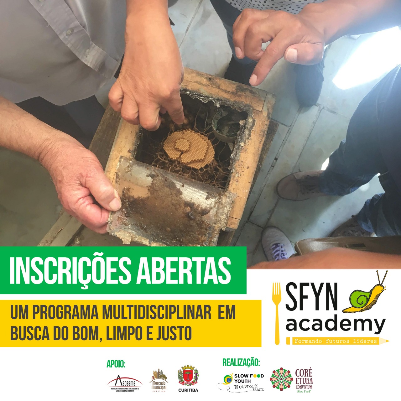 O programa, que acontecerá em Curitiba e região, entre os meses março e julho, irá abordar diversos assuntos, dentre eles as abelhas sem ferrão, a agro floresta e produção artesanal. Além disso, o programa conta com uma visita à Fortaleza Slow Food do Pinhão da Serra Catarinense, em Urubici-SC. Durante esses encontros os jovens serão incentivados e desafiados através de diferentes atividades a desenvolver sua autonomia e senso crítico.