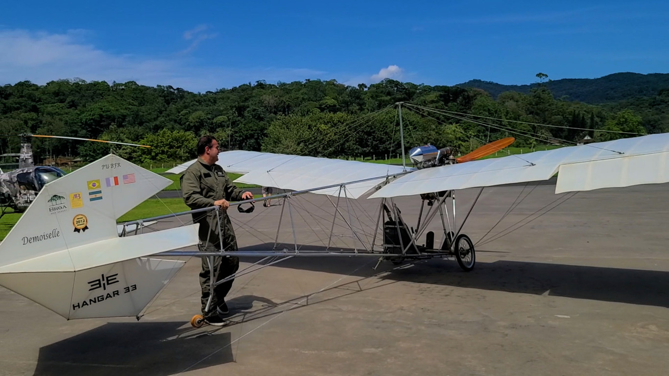 Brasil - Já pensou em transformar seu hobbie em um roteiro de viagem inesquecível? O voo com a DEMOISELLE projetada por Santos Dumont é um desses casos.