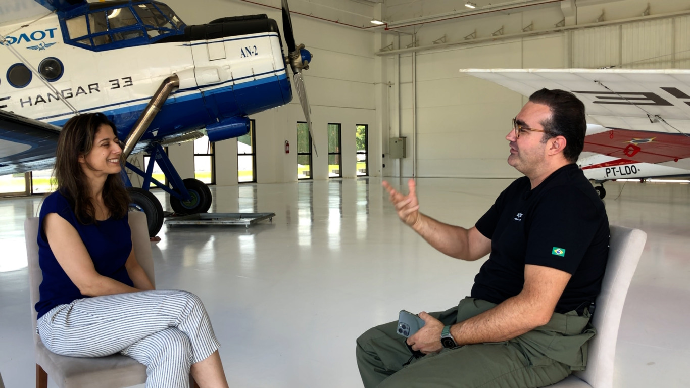 Eu tive a oportunidade de acompanhar um voo do empresário Dênis Lunelli, idealizador e proprietário do Hangar 33, espaço de uma das principais coleções de aviões clássicos do Brasil. Ele fez um voo super especial com a Demoiselle, réplica da aeronave que Santos Dumont pilotou na França em 17 de novembro de 1907. Também conhecemos dois Antonov que integram a coleção da Hangar 33. Além do T-Meia, ou North American T-6 Texan, primeiro modelo usado pela Esquadrilha da Fumaça, e outros clássicos da aviação de guerra. Pronto para decolar nessa ideia? Confira o vídeo do voo com a DEMOISELLE projetada por Santos Dumont, aqui: