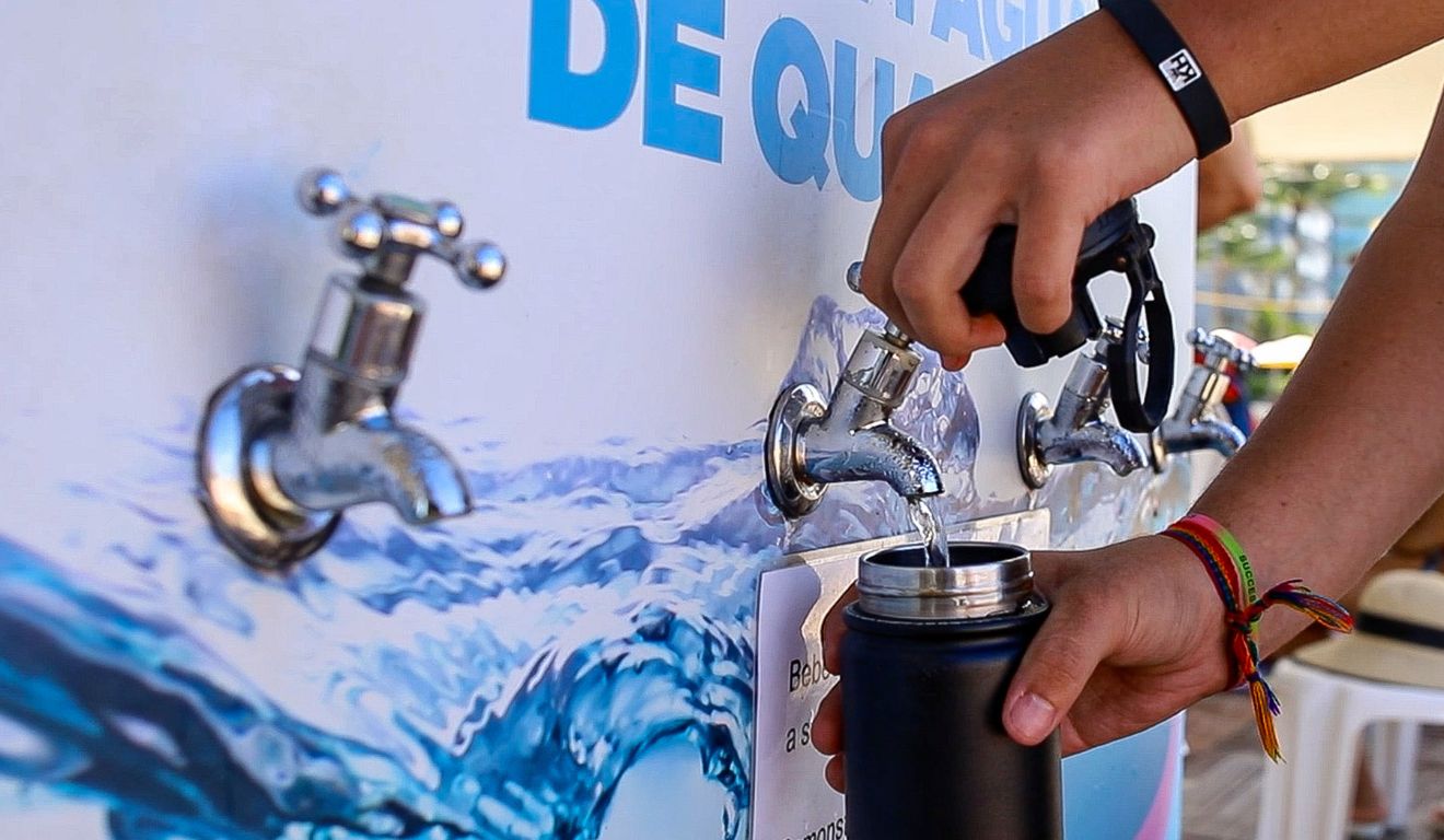 Apesar da disponibilidade de copos descartáveis, a recomendação é para que os frequentadores das praias levem suas próprias garrafas para reabastecimento.
