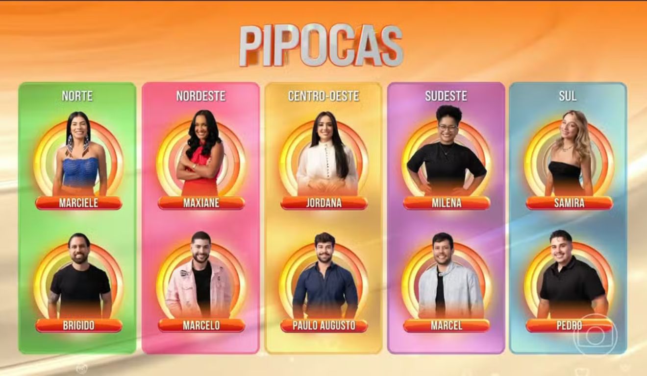 A escolha foi anunciada neste domingo (11), durante o programa Seleção BBB, após uma votação nacional aberta. O público definiu um homem e uma mulher de cada região do Brasil, totalizando dez integrantes do elenco Pipoca do BBB 26.