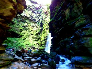 Mas o grande atrativo é mesmo a furna e a queda d’água que tem 30 metros. O jato muito intenso surge entre as rochas. Pois a altura das paredes e o formato em círculo da furna oferecem uma acústica impressionante aos sons no interior. A luz é outro atrativo. Mesmo em dias de sol forte, a iluminação chega sempre filtrada ou refletida. Essa combinação cria atmosfera de sonho! E muita gente procura o local simplesmente para meditação.