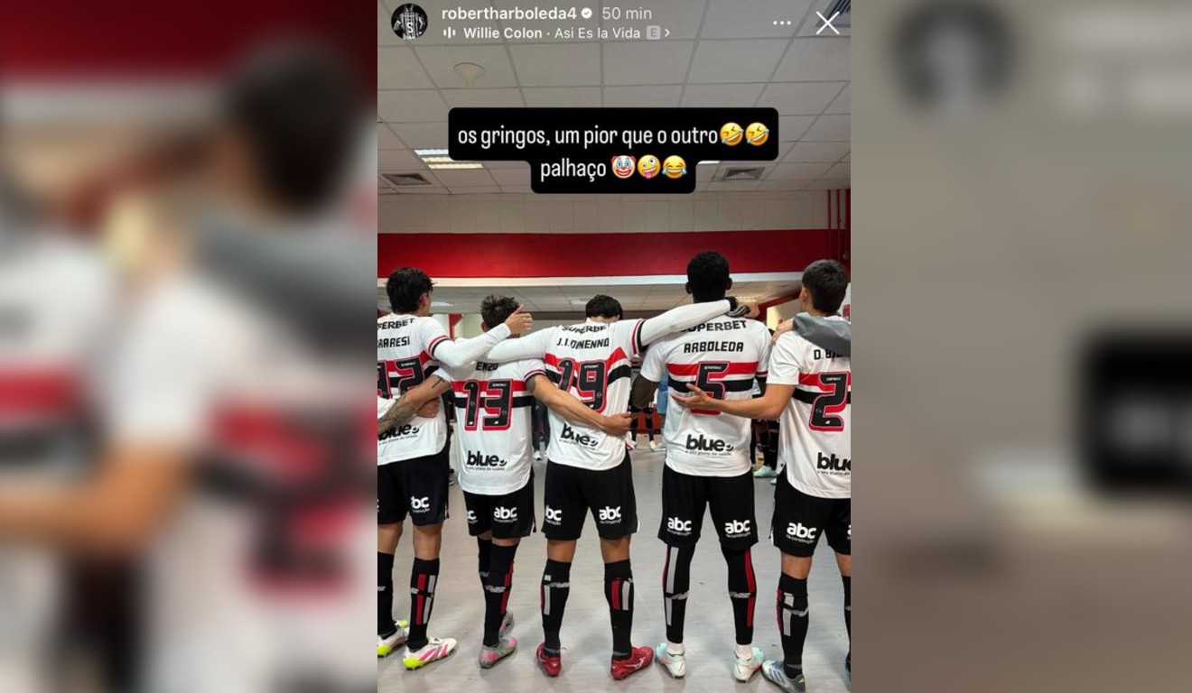 “Os gringos, um pior que o outro, palhaço”, escreveu Arboleda em uma foto nas redes sociais, em que aparece ao lado de outros gringos do Tricolor, como o atacante Dinenno, o lateral-esquerdo Enzo Díaz e o zagueiro Ferraresi.