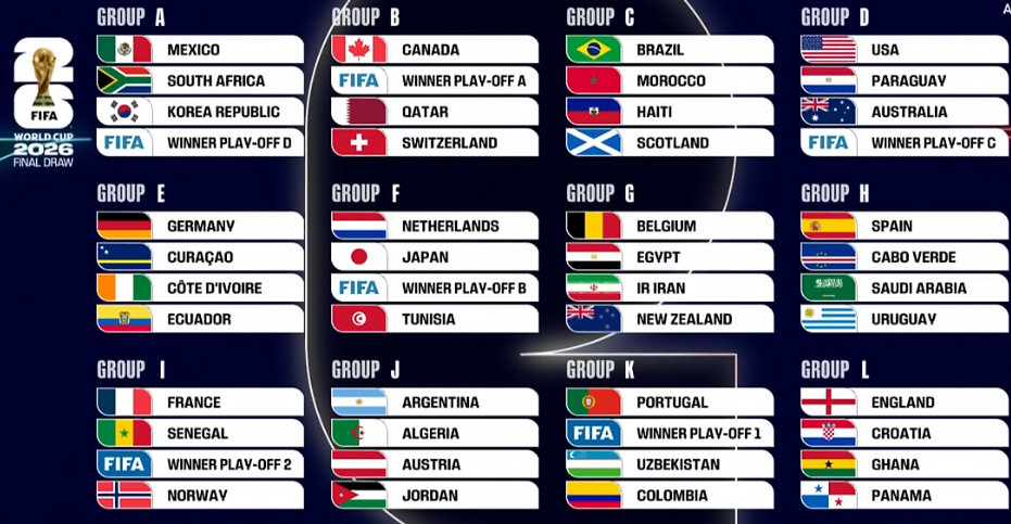 Este será o primeiro Mundial com 48 seleções, que ficaram separadas entre os grupos A e L. Classificam-se para a fase de mata-mata os dois primeiros colocados de cada grupo e os oito melhores terceiros colocados. A competição começa no dia 11 de junho de 2026, com a final sendo disputada no dia 19 de julho.