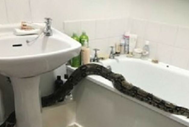 Uma inglesa entrou em pânico ao se deparar com uma cobra de 2,5 metros de comprimento aninhada na pia do banheiro de seu apartamento em Birkenhead, na Inglaterra, no dia 30 de dezembro de 2019. Apesar da ocorrência ser do ano anterior, as imagens só foram divulgadas na última semana.