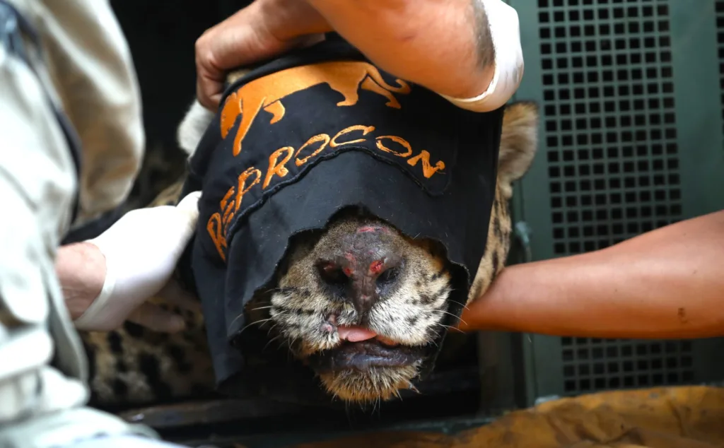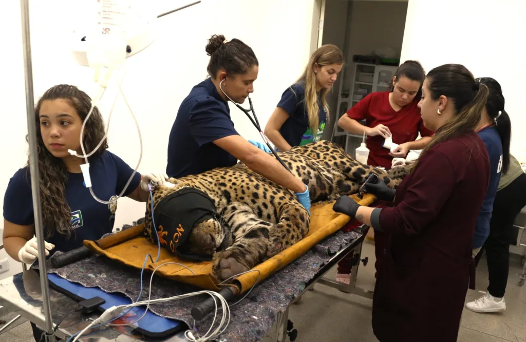 A onça-pintada que matou o caseiro Jorge Ávalo, de 60 anos, no Pantanal, chegou acordada para fazer exames no CRAS (Centro de Reabilitação de Animais Silvestres), em Campo Grande, Mato Grosso do Sul. O animal foi capturado pela PMA (Polícia Militar Ambiental) na madrugada desta quinta-feira (24), na mesma região onde ocorreu o ataque fatal.