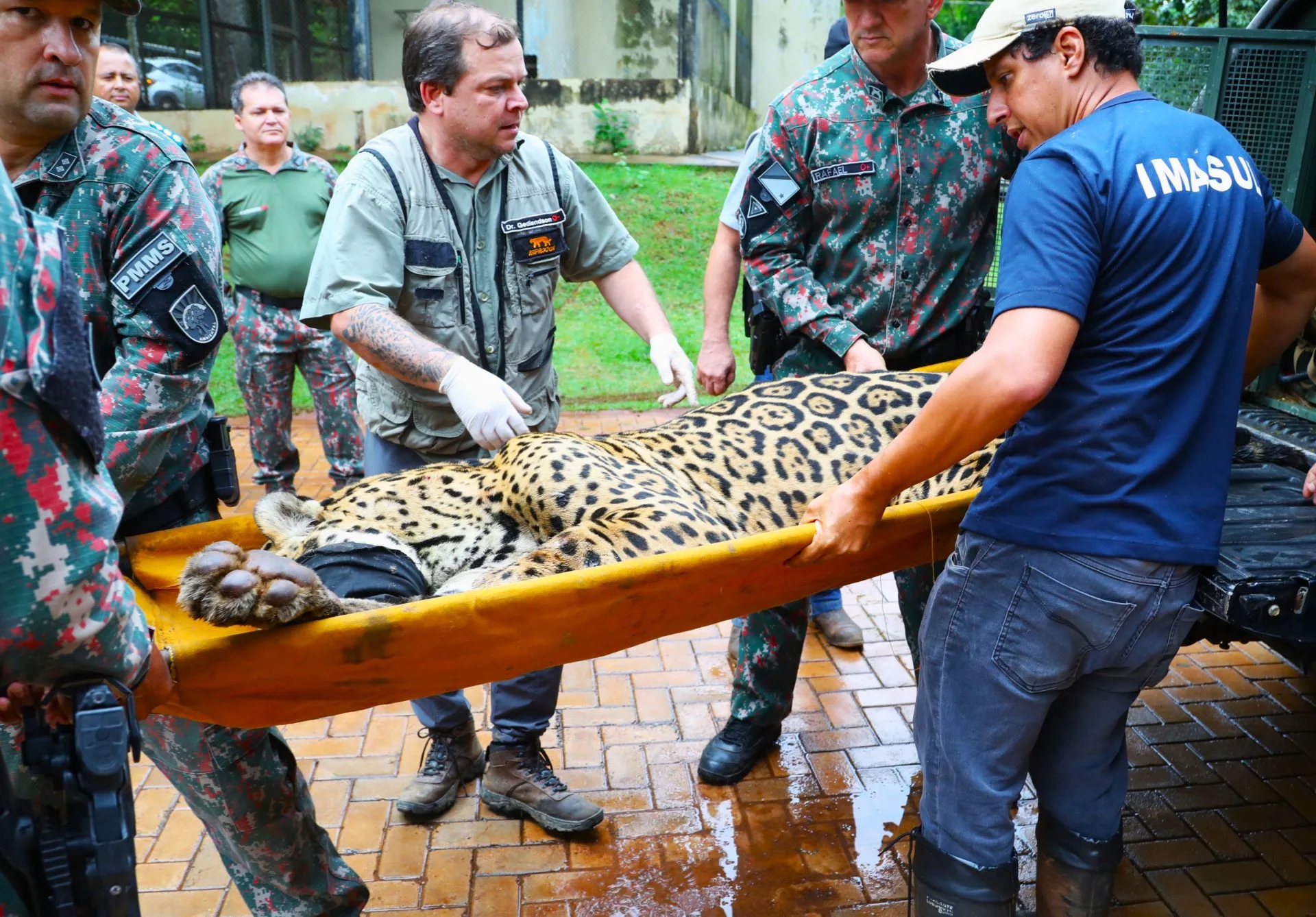 A onça-pintada que matou o caseiro Jorge Ávalo, de 60 anos, no Pantanal, chegou acordada para fazer exames no CRAS (Centro de Reabilitação de Animais Silvestres), em Campo Grande, Mato Grosso do Sul. O animal foi capturado pela PMA (Polícia Militar Ambiental) na madrugada desta quinta-feira (24), na mesma região onde ocorreu o ataque fatal.