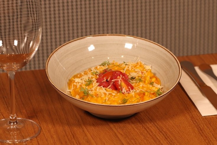 - Risotto de Abóbora com Linguiça Blumenau: Risotto de abóbora cabotiá e linguiça Blumenau artesanal.