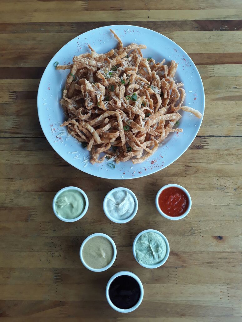 Uma porção generosa de tirinhas de massa de pastel, bem fresquinha e crocante, acompanhada de seis molhos exclusivos para mergulhar cada petisco e se lambuzar. Já imaginou que delícia? Essa maravilha se chama Viagem na Maionese e é o novo prato do Hendrix Brew House, ponto de encontro de quem é fã de cervejas artesanais e rock and roll em Curitiba. Ideal para dividir com a galera, a porção custa R$ 30 e apresenta os seis molhos feitos pelo chef da casa, Thiago Pires Carvalho.