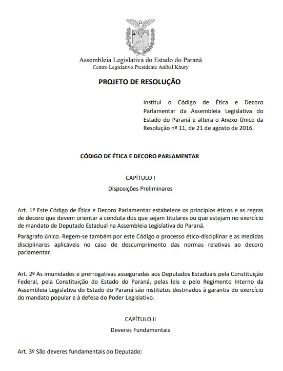 Paraná - Segundo o projeto que ainda vai tramitar poderão ser punidos casos de: desrespeito a autoridades, ofensas públicas à imagem institucional da Assembleia Legislativa do Paraná e de deputados, inclusive em redes sociais além da prática de violência política de gênero e injuria racial. Essas regras surgem como uma resposta aos recentes episódios de insultos e acusações em pronunciamentos na tribuna da Casa. Outras novidades são: aumento do tempo de suspensão do mandato de 60 para 180 dias- o que inclui a perda do direito a fala nas sessões e a participação em comissões e o aumento de cinco para sete integrantes no Conselho de Ética, conforme antecipou esta coluna.