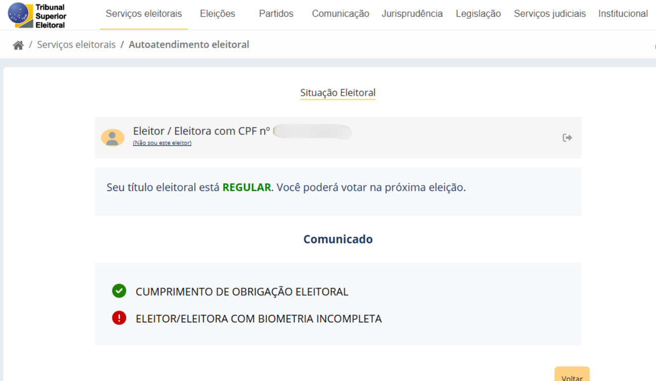 Também é possível consultar a situação eleitoral junto ao Tribunal Regional Eleitoral de cada estado.