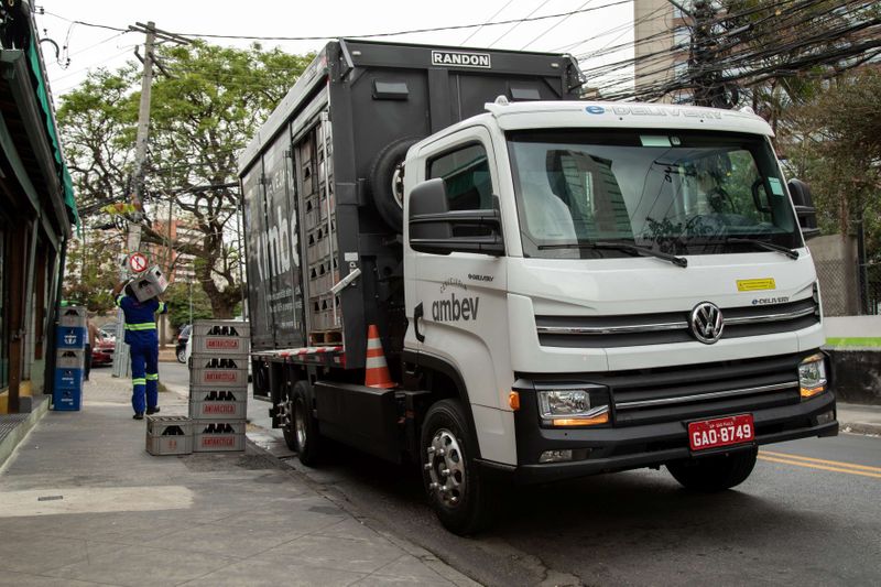 SÃO PAULO (Reuters) – A Ambev confirmou a primeira encomenda de 100 caminhões elétricos de entrega urbana para a Volkswagen Caminhões e Ônibus (VWCO), parte de um projeto de centenas de milhões de reais para a aquisição de 1.600 veículos elétricos até 2023 pela fabricante de bebidas.