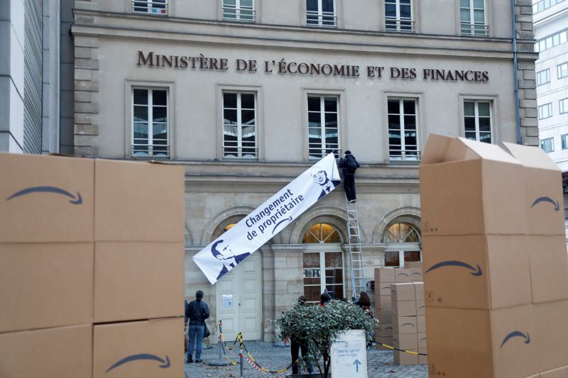 (Reuters) – Ativistas empilharam caixas de papelão fora do prédio do Ministério das Finanças em Paris nesta sexta-feira, em protesto contra a expansão da Amazon na França, enquanto a varejista online lançava no país uma campanha atrasada de “Black Friday”.