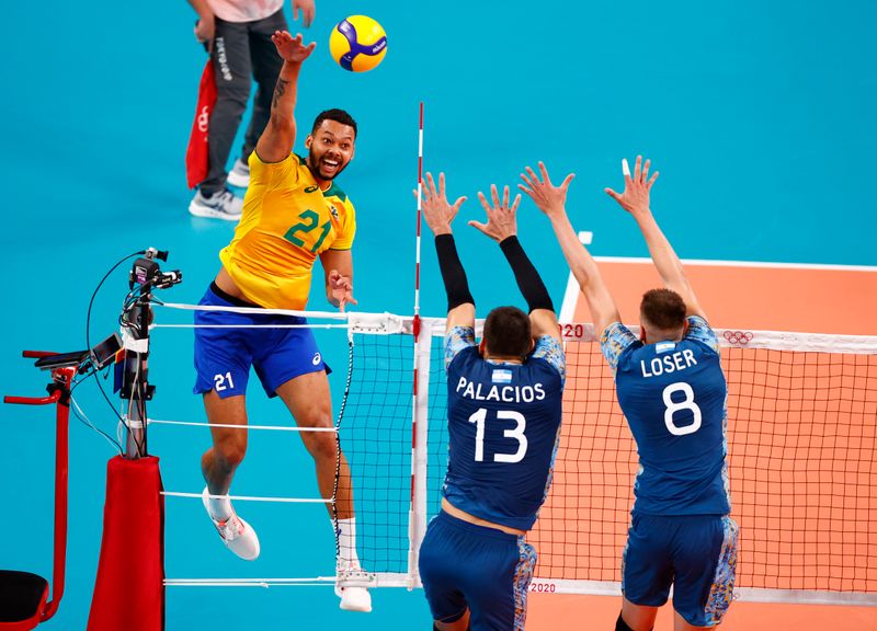 TÓQUIO (Reuters) – O Brasil se recuperou de uma desvantagem de dois sets para derrotar a Argentina em uma partida emocionando do torneio de vôlei masculino dos Jogos de Tóquio, nesta segunda-feira, enquanto a campeã mundial Polônia recuperou-se de uma derrota inesperada na estreia para o Irã derrotando a Itália.