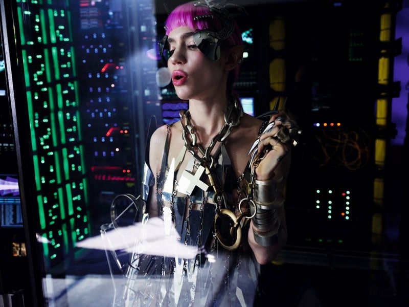 O rapper Bohan Phoenix posa em um piano, enquanto a foto do músico Grimes se passa em um cenário futurista. Adams, que tirou as fotos em Los Angeles, Capri e Canadá no último verão do Hemisfério Norte, também está presente.