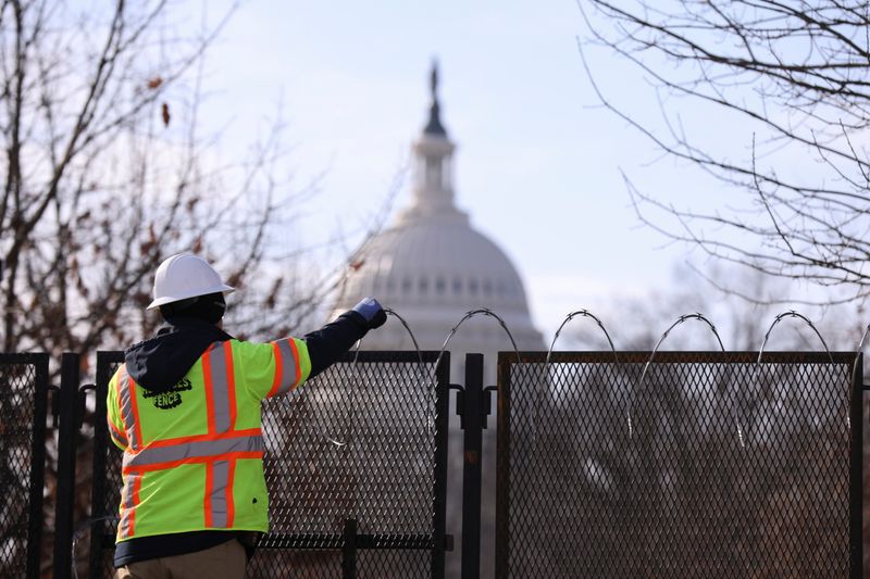 Os participantes do ensaio para a posse de Biden na quarta-feira ficaram em áreas internas do Capitólio, de acordo com uma testemunha da Reuters.