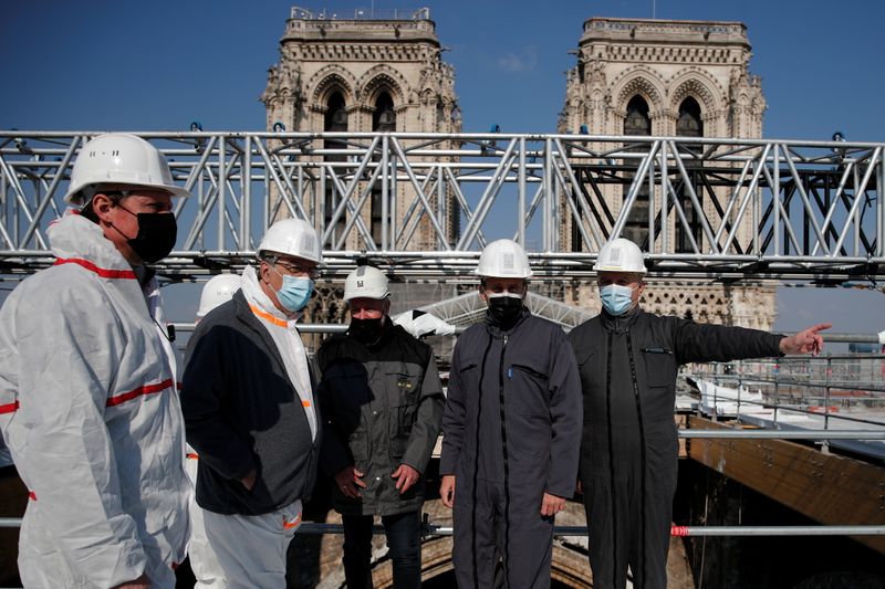 PARIS (Reuters) – O presidente da França, Emmanuel Macron, elogiou nesta quinta-feira os esforços penosos de reconstrução da Notre-Dame de Paris, dois anos depois de chamas terem irrompido no sótão de séculos da catedral e feito seu pináculo despencar abóbadas abaixo.