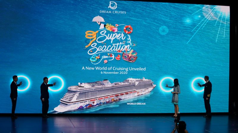 Antes de iniciar sua curta “navegação” no World Dream, de 335 metros, os passageiros foram submetidos a testes de coronavírus para embarcar no navio, que estava operando com metade da capacidade para evitar aglomeração.