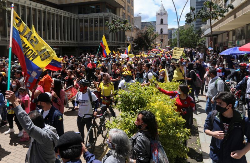 Os protestos que começaram no final de abril, originalmente contra uma reforma tributária já descartada, causam escassez de alimento e gasolina e limita as exportações, disse o governo. Os manifestantes passaram a incluir exigências como uma renda básica, o fim da violência policial e mais oportunidades para os jovens.