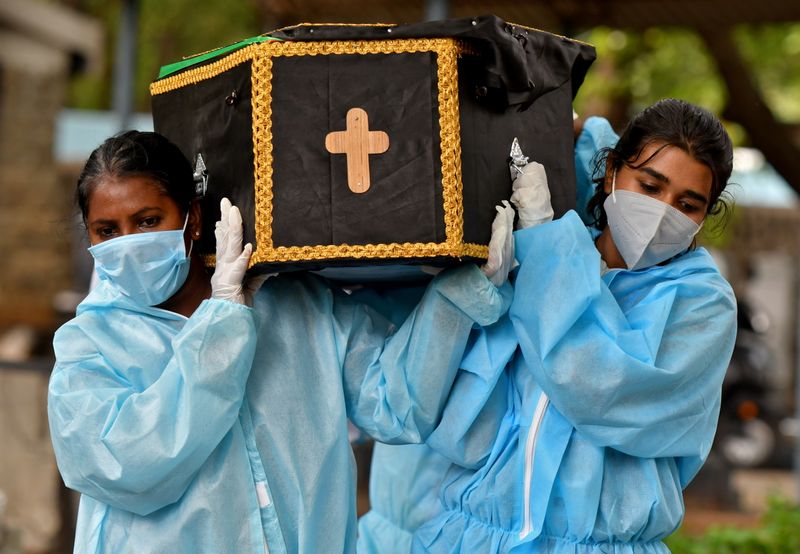 A Índia relatou 267.334 infecções diárias novas nesta quarta-feira, o que eleva seu total para 25,5 milhões, cifra só inferior à dos Estados Unidos, e 283.248 mortes, como mostraram dados do Ministério da Saúde.