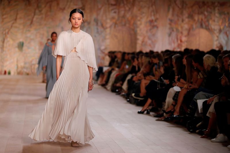 A estilista Maria Grazia Chiuri disse à Reuters que queria que os tecidos estivessem na frente e no centro. Assim, o público na sala poderia apreciar os detalhes e a natureza tátil do tecido de uma forma que não aparece online ou em filmagens de vídeo.
