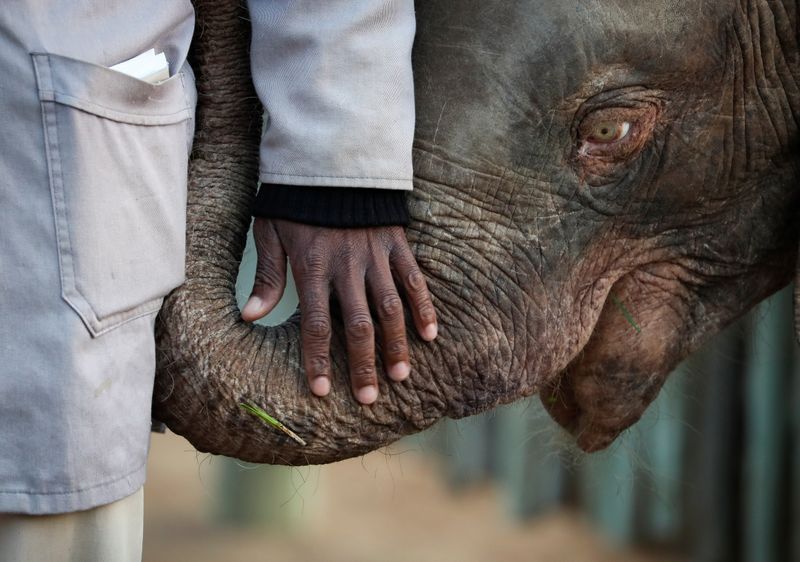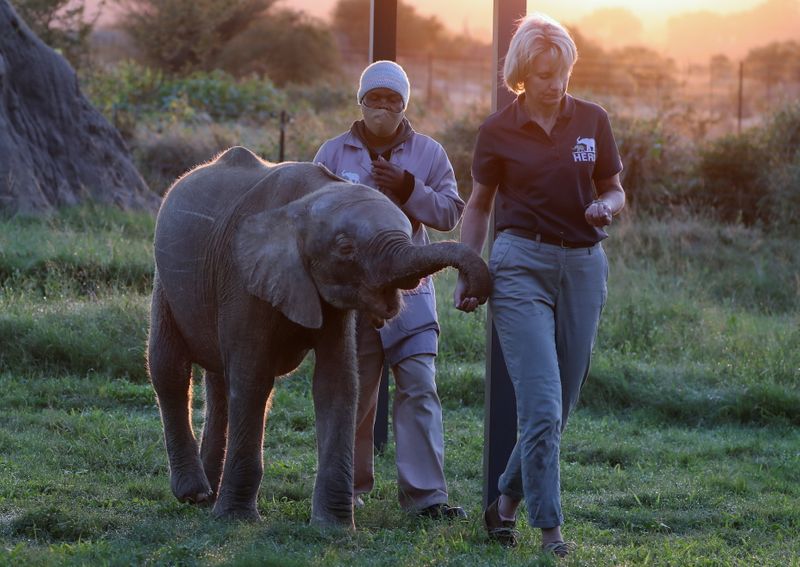 Muitos elefantes da manada também são órfãos e criados por humanos, contou Roode.