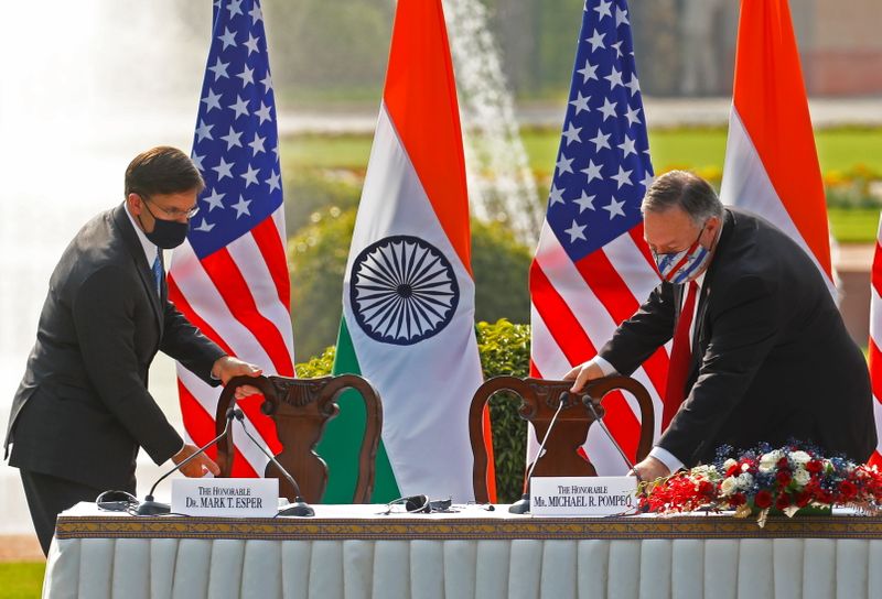 NOVA DÉLHI (Reuters) – Os Estados Unidos e a Índia assinaram um pacto para compartilhar dados sigilosos de satélites e mapas nesta terça-feira, e o secretário de Estado norte-americano, Mike Pompeo, alertou para a ameaça representada por uma China cada vez mais assertiva.