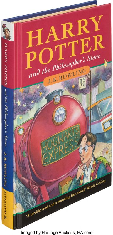 A edição britânica de capa dura de 1997 de “Harry Potter e a Pedra Filosofal”, com uma ilustração colorida na capa, foi descrita pela Heritage Auctions como “mágica, incrivelmente brilhante e quase praticamente intocada”. O livro foi publicado nos Estados Unidos como “Harry Potter e a Pedra do Feiticeiro”.