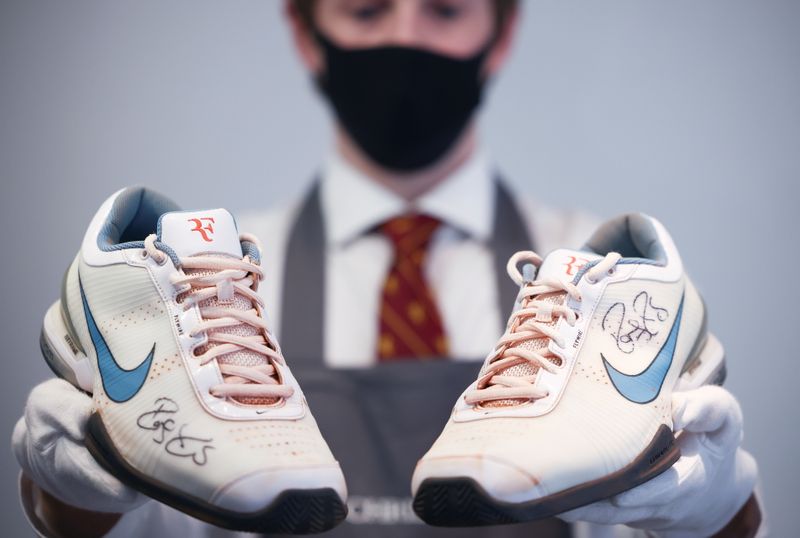 Fãs e colecionadores também poderão disputar o uniforme e a raquete que ele usou na segunda de suas três finais de Wimbledon contra seu arquirrival Rafael Nadal em 2007, incluindo os tênis decorados com bandeiras da Suíça que denotam seus títulos na grama inglesa.