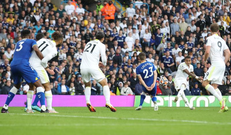 LEEDS (Reuters) – O ponta Raphinha, do Leeds, soltou um foguete no segundo tempo para empatar a partida pela segunda vez para o clube de Yorkshire e assegurar o 2 x 2 contra o Everton, pelo Campeonato Inglês, neste sábado, o primeiro ponto do time na temporada.