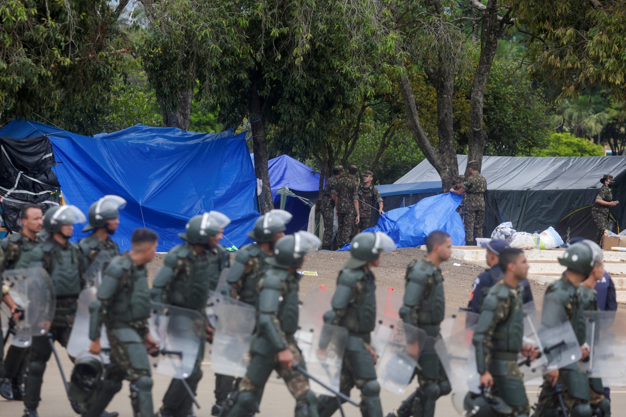 Mais cedo, imagens da Reuters TV mostraram um grande contingente de policiais militares –entre membros da tropa de choque com capacetes e escudos, policiais montados a cavalo e dirigindo motocicletas– no local. Pouco depois, as imagens mostraram militares do Exército desmontando barracas e outras estruturas deixadas no local pelos bolsonaristas.