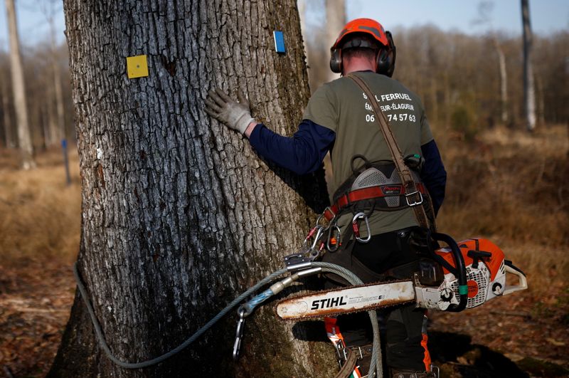 As árvores que serão tiradas do Domaine de Bercé, perto de Le Mans, foram identificadas no início do ano e devem ser todas cortadas antes do final de março, antes de a seiva brotar e a madeira ficar muito úmida.