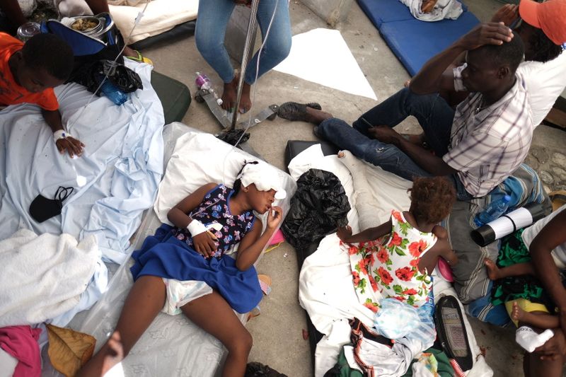 LES CAYES, Haiti (Reuters) – Médicos lutavam para salvar a vida de crianças e pessoas feridas em tendas improvisadas fora de hospitais lotados no Haiti, nesta segunda-feira, enquanto uma tempestade que se aproxima ameaça causar ainda mais devastação depois que um grande terremoto matou pelo menos 1.297 pessoas no Haiti.