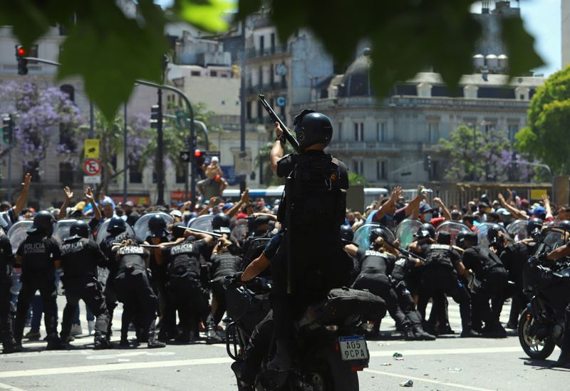 BUENOS AIRES (Reuters) – Incidentes violentos foram registrados entre fãs de futebol e a polícia argentina nesta quinta-feira, à medida que uma multidão formava uma fila de quilômetros no centro de Buenos Aires aguardando para prestar uma última homenagem ao astro Diego Maradona, morto na quarta-feira após uma parada cardíaca.