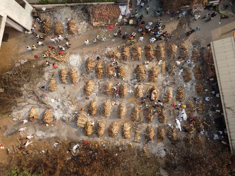 NOVA DÉLHI/MUMBAI (Reuters) – O total de casos de Covid-19 da Índia passou de 18 milhões nesta quinta-feira, na esteira de mais um recorde mundial de infecções diárias, enquanto coveiros trabalham 24 horas para enterrar vítimas e fileiras de piras funerárias são montadas em parques e estacionamentos.