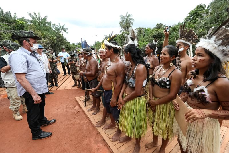O presidente visitou pela primeira vez duas terras indígenas na Amazônia como chefe de Estado, na quinta-feira, apesar de protestos de líderes ianomâmis contra sua iniciativa de liberar as áreas protegidas para mineração comercial.