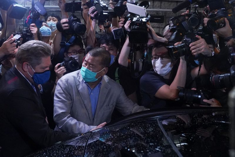 Lai, apoiador firme do movimento democrático da cidade, foi preso na segunda-feira por suspeita de conluio com forças estrangeiras, e a polícia revistou os escritórios de seu tabloide Apple Daily.