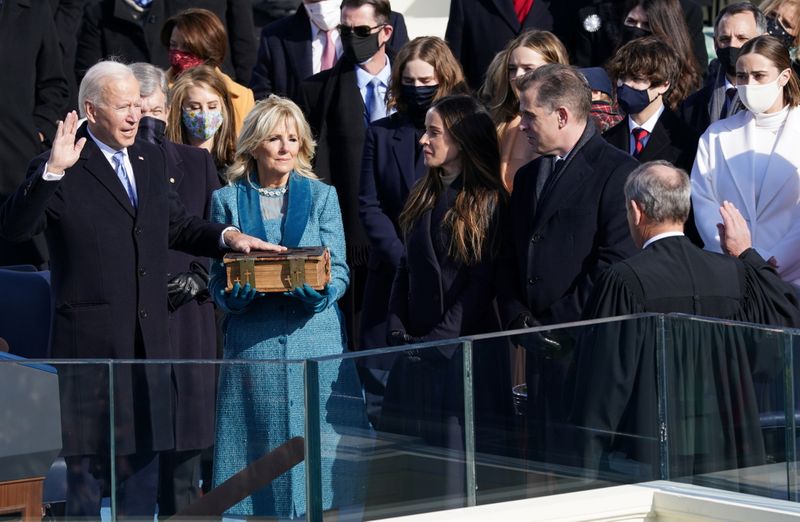 WASHINGTON (Reuters) – O democrata Joe Biden tomou posse como 46º presidente dos Estados Unidos nesta quarta-feira, durante uma cerimônia em um Capitólio fortemente protegido, encerrando o tumultuado mandato de quatro anos de seu predecessor republicano Donald Trump na Presidência.