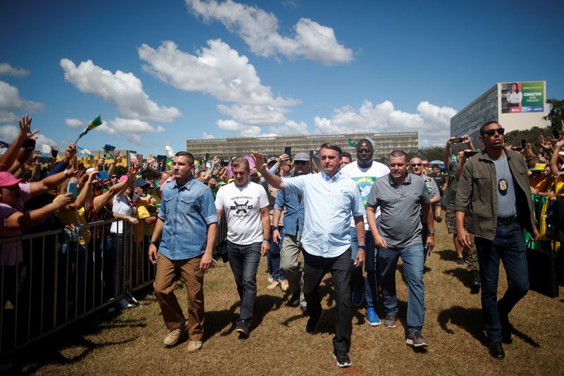 SÃO PAULO/RIO DE JANEIRO (Reuters) -Sem discursar aos apoiadores, o presidente Jair Bolsonaro compareceu rapidamente à manifestação favorável ao seu governo na manhã deste domingo em Brasília e afirmou, em uma transmissão ao vivo em suas redes sociais, que o ato era “em defesa da Constituição, da democracia e da liberdade”.