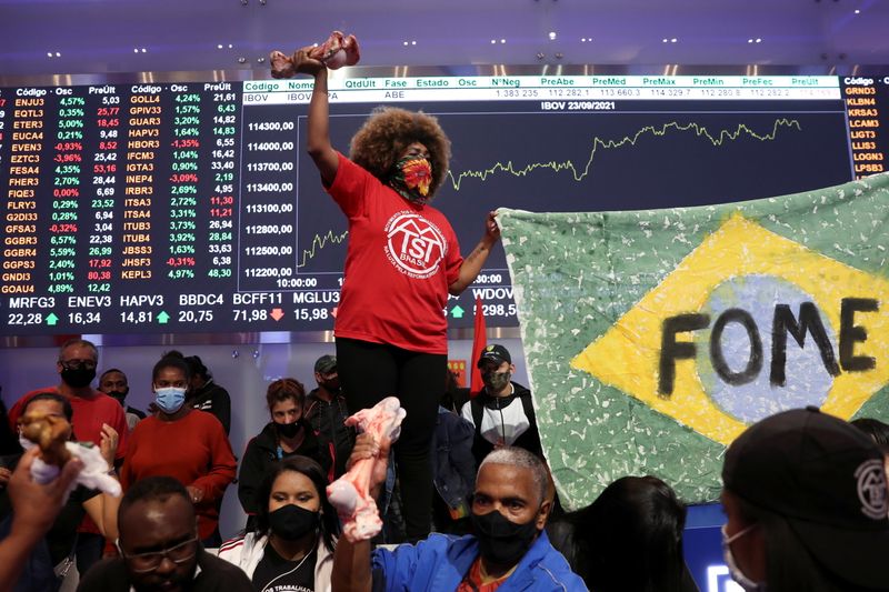 SÃO PAULO (Reuters) – Integrantes do Movimento dos Trabalhadores Sem Teto (MTST) ocuparam nesta quinta-feira a sede da bolsa de valores B3 para protestar contra a desigualdade social e o governo do presidente Jair Bolsonaro, cobrando ações para combater a insegurança alimentar em meio à disparada da inflação.
