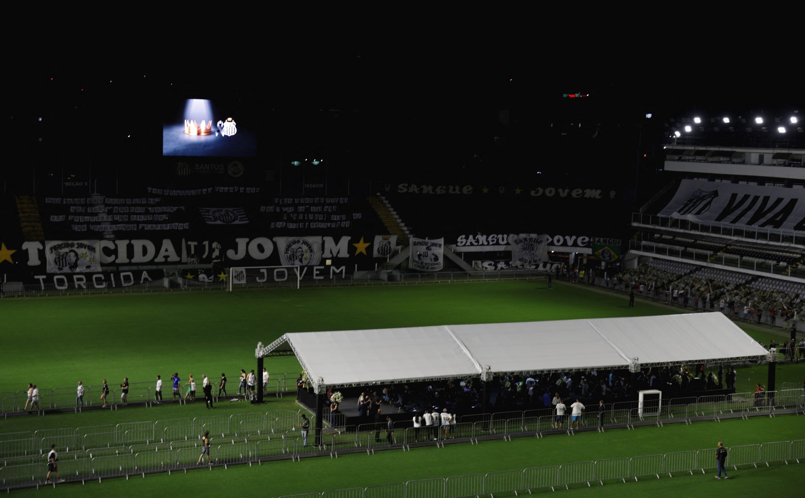 Os milhares de fãs de Pelé –a maioria com as camisas do Santos e da seleção brasileira, mas também de outros clubes– aguardavam cerca de duas horas em uma fila que se estendia por mais de 400 metros no entorno do estádio onde Pelé encantou o mundo de 1956 a 1974, período em que atuou na equipe santista, para vê-lo pela última vez.